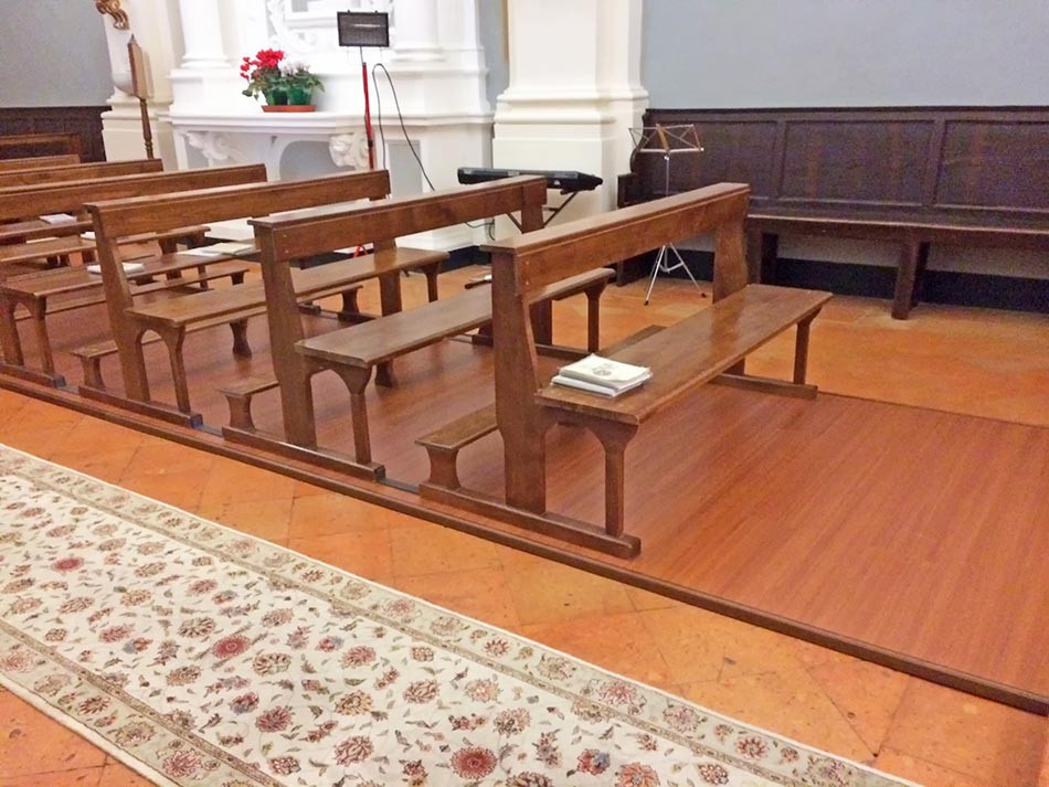 Pedane riscaldanti modulari per luoghi di lavoro e di riunione, chiese e luoghi di culto