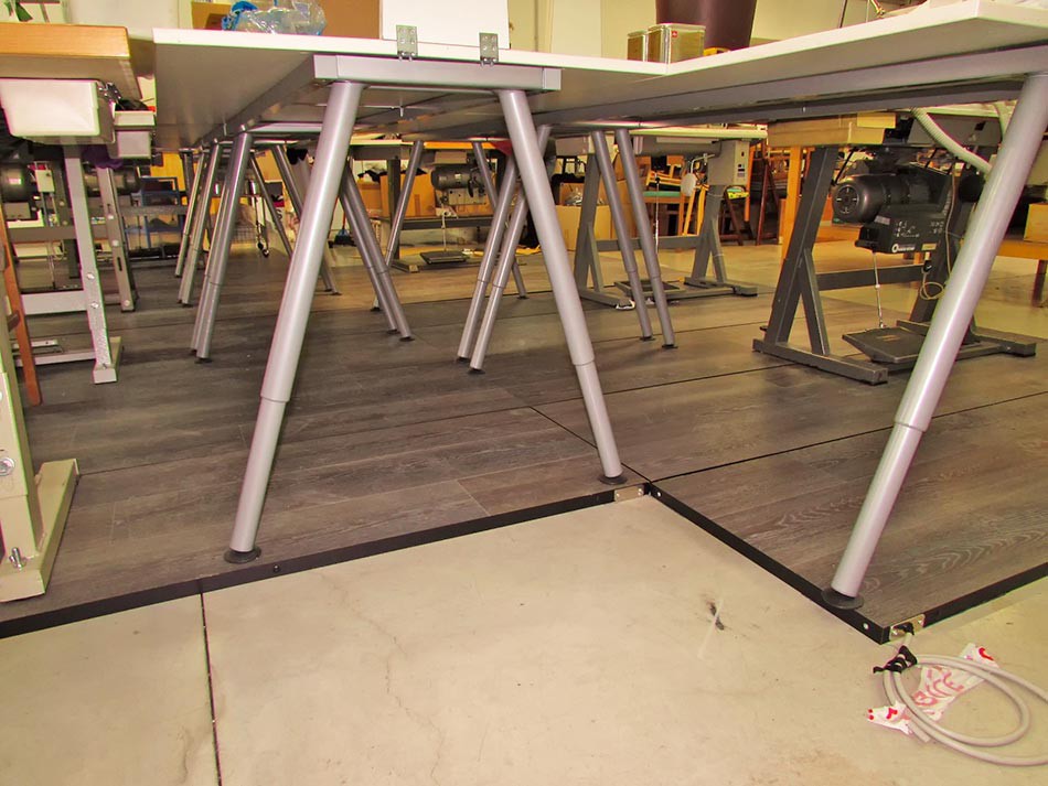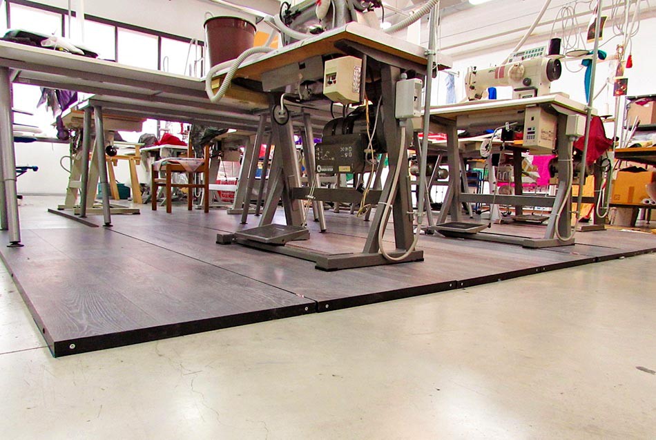 - Discreto: Dall'aspetto di una semplice pedana in legno (o altro materiale a scelta) da posizionarsi sul pavimento al di sotto di panche, tavoli, altari, sedute e banchi da lavoro.